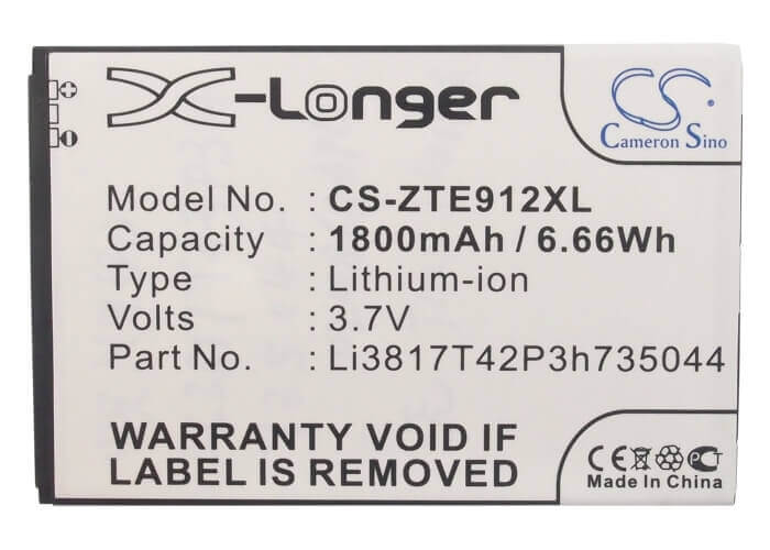 Unlock uninterrupted performance with the Cameron Sino CS-ZTE912XL replacement battery, designed specifically for Metropcs, Boostmobile, At&t, Zte SmartPhone. This high-quality 1800mAh / 6.66Wh Li-ion battery delivers a reliable 3.7V voltage with an energy rating of 6.66Wh, ensuring your device operates at peak efficiency throughout extended sessions. Whatever you are doing this battery provides the power and reliability you need.
