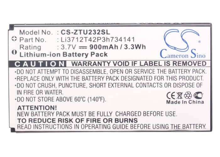Cameron Sino CS-ZTU232SL Replacement Battery for Zte SmartPhone - 900mAh / 3.33Wh