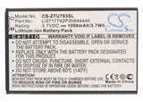 3.7V, Li-ion, 1000mAh, SmartPhone battery fits Zte, Li3711t42p3h644440, U793, 3.7Wh