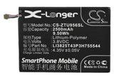 3.8V, Li-Polymer, 2500mAh, SmartPhone battery fits Zte, Li3825t43p3h755544, U956, 9.5Wh